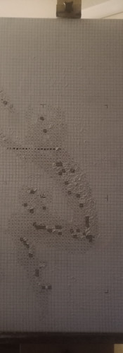 House paint/polyfilla/bitumen on canvas 100x75cm