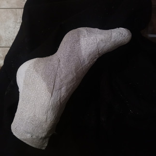 Although Segal started his art career as a painter, his best known works are cast life-size figures and the tableaux the figures inhabited. In place of traditional casting techniques, Segal pioneered the use of plaster bandages (plaster-impregnated gauze strips designed for making orthopedic casts) as a sculptural medium. In this process, he first wrapped a model with bandages in sections, then removed the hardened forms and put them back together with more plaster to form a hollow shell. These forms were not used as molds; the shell itself became the final sculpture, including the rough texture of the bandages. Initially, Segal kept the sculptures stark white, but a few years later he began painting
